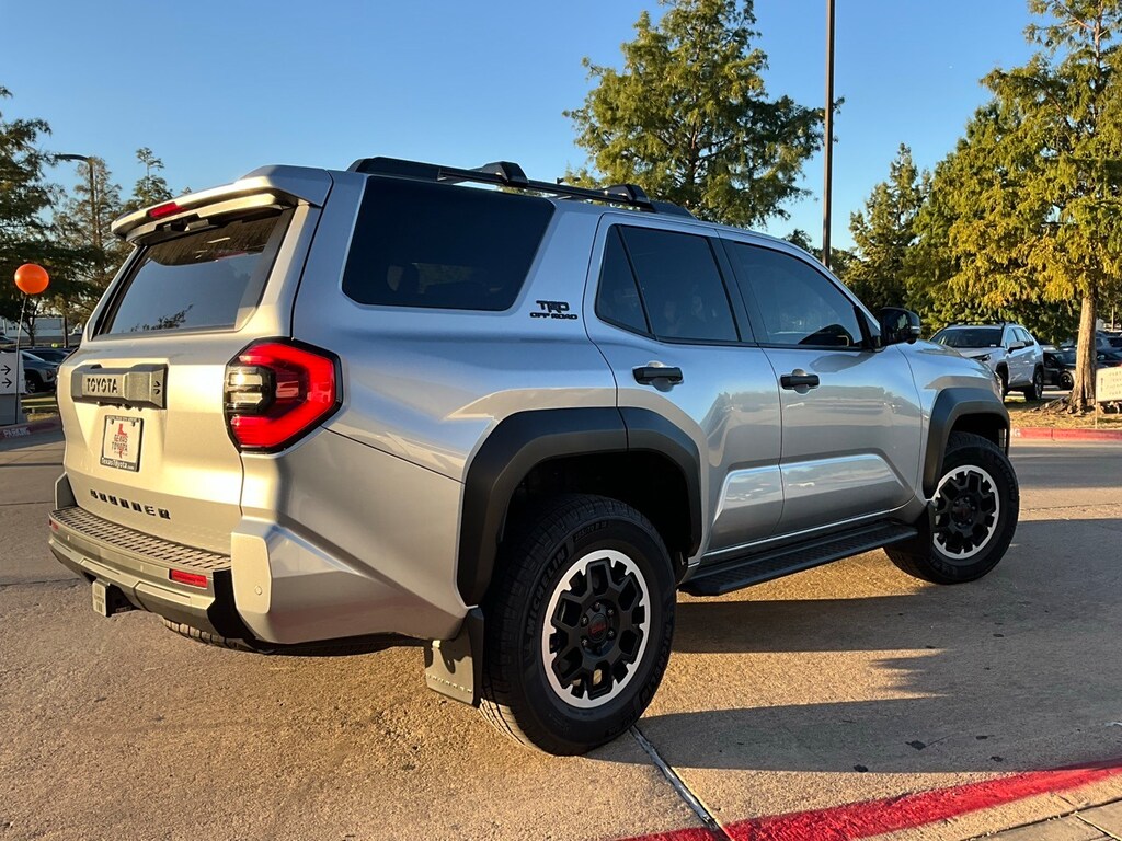 Backup Camera, LED Accent Lighting, Night Vision Auto-Dimming Mirror, Wheels, ACROSS FROM DFW AIRPORT, PRE COLLISION SYSTEM WITH PEDESTRIAN DETECTION, LANE DEPARTURE ALERT WITH SWAY WARNING, AUTO HIGH BEAMS, DYNAMIC RADAR CRUISE CONTROL, Push Button Start, Apple CarPlay Compatible, Android Auto, 4WD, Black Artificial Leather, 15 Speakers, 20" Wheels, 4-Wheel Disc Brakes, ABS brakes, Air Conditioning, AM/FM radio: SiriusXM, Anti-whiplash front head restraints, Apple CarPlay/Android Auto, Auto High-beam Headlights, Auto-dimming Rear-View mirror, Automatic temperature control, Brake assist, Bumpers: body-color, Color Keyed Bodyside Molding (TMS), Compass, Driver door bin, Driver vanity mirror, Dual front impact airbags, Dual front side impact airbags, Electronic Stability Control, Emergency communication system: Safety Connect (1-year trial), Exterior Parking Camera Rear, Front & Rear Molded Black 4Runner Mudguards (TMS), Front anti-roll bar, Front Bucket Seats, Front Center Armrest, Front dual zone A/C, Front fog lights, Front reading lights, Front wheel independent suspension, Heated & Ventilated Front Bucket Seats, Heated door mirrors, Heated front seats, Illuminated entry, Inside Rear-View Mirror, Interior D-Pillar Cargo Lights (TMS), Knee airbag, Leather Shift Knob, Leather steering wheel, Low tire pressure warning, Memory seat, Moonroof, Navigation System, Occupant sensing airbag, Outside temperature display, Overhead airbag, Overhead console, Panic alarm, Passenger door bin, Passenger vanity mirror, Power door mirrors, Power driver seat, Power passenger seat, Power steering, Power windows, Radio: 14" Audio, Rear anti-roll bar, Rear seat center armrest, Rear side impact airbag, Rear window defroster, Rear window wiper, Remote keyless entry, Security system, Speed control, Speed-sensing steering, Split folding rear seat, Spoiler, Steering wheel mounted audio controls, Synthetic Seat Trim, Tachometer, Telescoping steering wheel, Tilt steering wheel, Tow Technology Package, Traction control, TRD Offroad Premium, Trip computer, Turn signal indicator mirrors, Variably intermittent wipers, Ventilated front seats, Wheels: 18" Matte-Black Painted, 4WD, Black Artificial Leather.