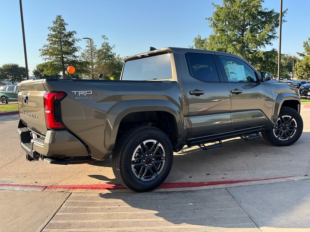 Backup Camera, LED Accent Lighting, Night Vision Auto-Dimming Mirror, Wheels, ACROSS FROM DFW AIRPORT, PRE COLLISION SYSTEM WITH PEDESTRIAN DETECTION, LANE DEPARTURE ALERT WITH SWAY WARNING, AUTO HIGH BEAMS, DYNAMIC RADAR CRUISE CONTROL, Push Button Start, Apple CarPlay Compatible, Android Auto, 20" Wheels, 3.583 Axle Ratio, 4-Wheel Disc Brakes, 6 Speakers, ABS brakes, Air Conditioning, AM/FM radio: SiriusXM, Anti-whiplash front head restraints, Apple CarPlay/Android Auto, Auto High-beam Headlights, Auto-dimming Rear-View mirror, Automatic temperature control, Bed Scene Lighting (TMS), Bed Step (TMS), Body Side Molding (TMS), Brake assist, Bumpers: body-color, Driver door bin, Driver vanity mirror, Dual front impact airbags, Dual front side impact airbags, Electronic Stability Control, Emergency communication system: Safety Connect (1-year trial), Exterior Parking Camera Rear, Four wheel independent suspension, Front anti-roll bar, Front Bucket Seats, Front Center Armrest, Front fog lights, Front reading lights, Fully automatic headlights, Heated door mirrors, Illuminated entry, Knee airbag, Leather Seat Trim, Leather Shift Knob, Leather steering wheel, Low tire pressure warning, Occupant sensing airbag, Outside temperature display, Overhead airbag, Overhead console, Panic alarm, Passenger door bin, Passenger vanity mirror, Power door mirrors, Power steering, Power windows, Predator Step (TMS), Radio: 8" Toyota Audio Multimedia, Radio: Premium Audio w/14" Display, Rear step bumper, Rear window defroster, Remote keyless entry, Security system, Speed control, Speed-sensing steering, Split folding rear seat, Spray-On Bed Liner (TMS), Steering wheel mounted audio controls, Tachometer, Telescoping steering wheel, Tilt steering wheel, Traction control, TRD Sport Package, Trip computer, Turn signal indicator mirrors, Variably intermittent wipers, Wheels: 18" TRD Sport Alloy.