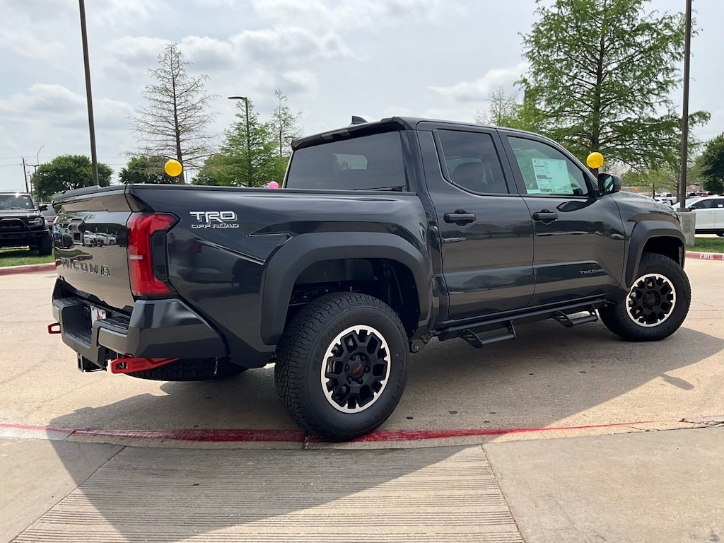 Backup Camera, LED Accent Lighting, Night Vision Auto-Dimming Mirror, Wheels, ACROSS FROM DFW AIRPORT, PRE COLLISION SYSTEM WITH PEDESTRIAN DETECTION, LANE DEPARTURE ALERT WITH SWAY WARNING, AUTO HIGH BEAMS, DYNAMIC RADAR CRUISE CONTROL, Push Button Start, Apple CarPlay Compatible, Android Auto, 4WD, 18" Wheels, 20" Wheels, 3.583 Axle Ratio, 4-Wheel Disc Brakes, 6 Speakers, ABS brakes, Air Conditioning, AM/FM radio: SiriusXM, Anti-whiplash front head restraints, Apple CarPlay/Android Auto, ARB Rear Tow Hooks, Auto High-beam Headlights, Auto-dimming Rear-View mirror, Automatic temperature control, Body Side Molding, Brake assist, Bumpers: body-color, Driver door bin, Driver vanity mirror, Dual front impact airbags, Dual front side impact airbags, Electronic Stability Control, Emergency communication system: Safety Connect (up to 10-year trial subscription), Exterior Parking Camera Rear, Four wheel independent suspension, Front anti-roll bar, Front Bucket Seats, Front Center Armrest, Front fog lights, Front reading lights, Fully automatic headlights, Heated door mirrors, Illuminated entry, JBL Premium Audio, Knee airbag, Leather Seat Trim, Leather Shift Knob, Leather steering wheel, Low tire pressure warning, Occupant sensing airbag, on-Off Front Stabilizer Disconnect Mechanism, Outside temperature display, Overhead airbag, Overhead console, Panic alarm, Passenger door bin, Passenger vanity mirror, Power door mirrors, Power steering, Power windows, Radio: 8" Toyota Audio Multimedia, Rear step bumper, Rear window defroster, Remote keyless entry, Removable Predator Step, Security system, SofTex Seat Trim, Speed control, Speed-sensing steering, Split folding rear seat, Spray-on Bed Liner, Steering wheel mounted audio controls, Tachometer, Telescoping steering wheel, Tilt steering wheel, Traction control, TRD Off Road Package, Trip computer, Turn signal indicator mirrors, Variably intermittent wipers, 4WD.