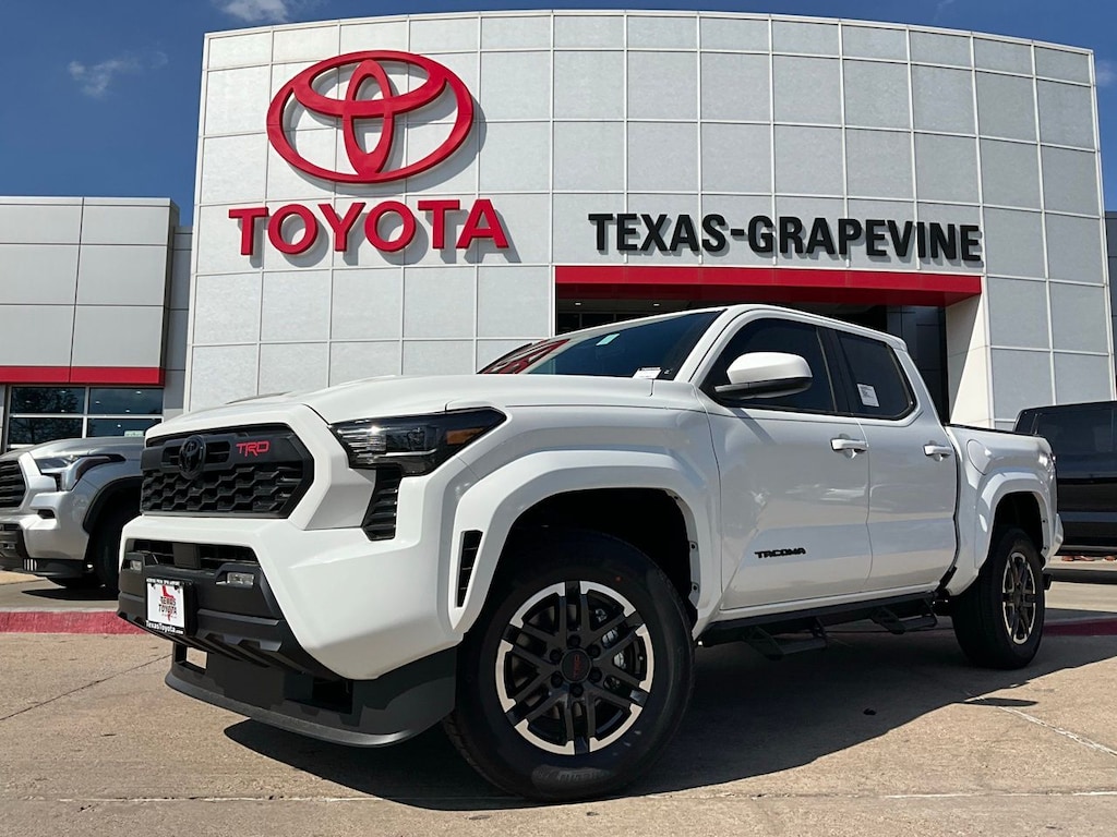 Backup Camera, LED Accent Lighting, Night Vision Auto-Dimming Mirror, Wheels, ACROSS FROM DFW AIRPORT, PRE COLLISION SYSTEM WITH PEDESTRIAN DETECTION, LANE DEPARTURE ALERT WITH SWAY WARNING, AUTO HIGH BEAMS, DYNAMIC RADAR CRUISE CONTROL, Push Button Start, Apple CarPlay Compatible, Android Auto, 20" Wheels, 3.583 Axle Ratio, 4-Wheel Disc Brakes, 6 Speakers, ABS brakes, Air Conditioning, AM/FM radio: SiriusXM, Anti-whiplash front head restraints, Apple CarPlay/Android Auto, Auto High-beam Headlights, Auto-dimming Rear-View mirror, Automatic temperature control, Bed Scene Lighting, Bed Step, Body Side Molding, Brake assist, Bumpers: body-color, Driver door bin, Driver vanity mirror, Dual front impact airbags, Dual front side impact airbags, Electronic Stability Control, Emergency communication system: Safety Connect (up to 10-year trial subscription), Exterior Parking Camera Rear, Four wheel independent suspension, Front anti-roll bar, Front Bucket Seats, Front Center Armrest, Front fog lights, Front reading lights, Fully automatic headlights, Heated door mirrors, Illuminated entry, Knee airbag, Leather Seat Trim, Leather Shift Knob, Leather steering wheel, Low tire pressure warning, Occupant sensing airbag, Outside temperature display, Overhead airbag, Overhead console, Panic alarm, Passenger door bin, Passenger vanity mirror, Power door mirrors, Power steering, Power windows, Radio: 8" Toyota Audio Multimedia, Radio: Premium Audio with 14" Display, Rear step bumper, Rear window defroster, Remote keyless entry, Removable Predator Step, Security system, Speed control, Speed-sensing steering, Split folding rear seat, Spray-on Bed Liner, Steering wheel mounted audio controls, Tachometer, Telescoping steering wheel, Tilt steering wheel, Traction control, TRD Sport Package, Trip computer, Turn signal indicator mirrors, Variably intermittent wipers, Wheels: 18" TRD Sport Alloy.