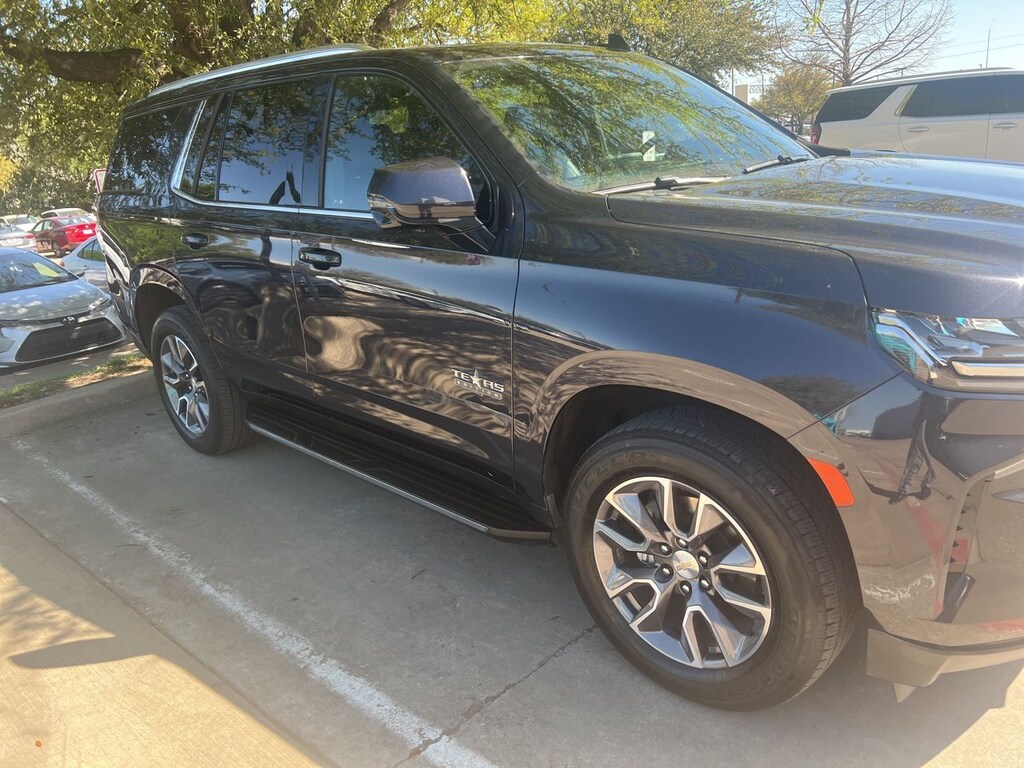 Located in Grapevine, just across from DFW Airport, Texas Toyota of Grapevine makes it easy to shop a top-tier selection of pre-owned vehicles. As the #1 pre-owned Toyota dealership in Dallasâ"Fort Worth, weâre committed to a straightforward buying experience and great value on every unit. Backup Camera, LED Accent Lighting, Night Vision Auto-Dimming Mirror, Wheels, ACROSS FROM DFW AIRPORT, PRE COLLISION SYSTEM WITH PEDESTRIAN DETECTION, LANE DEPARTURE ALERT WITH SWAY WARNING, AUTO HIGH BEAMS, DYNAMIC RADAR CRUISE CONTROL, Push Button Start, Apple CarPlay Compatible, Android Auto, Black Leather, 10-Way Power Driver & Passenger Seat Adjusters, 1st & 2nd Row Color-Keyed Carpeted Floor Mats, 20" Wheels, 2nd Row Pwr Release 60/40 Split-Folding Bench Seat, 3.23 Rear Axle Ratio, 3rd Row 60/40 Power-Folding Split-Bench Seat, 3rd row seats: split-bench, 4-Wheel Disc Brakes, 9 Speakers, ABS brakes, Air Conditioning, AM/FM radio: SiriusXM with 360L, Apple CarPlay/Android Auto, Auto High-beam Headlights, Auto-Dimming Inside Rear-View Mirror, Auto-dimming Rear-View mirror, Automatic Stop/Start, Automatic temperature control, Bose 9-Speaker Stereo Audio System Feature, Brake assist, Bright Front & Rear Door Sill Plates, Bumpers: body-color, Color-Keyed Carpeting Floor Covering, Compass, Delay-off headlights, Driver & Front Outboard Passenger Airbags, Driver Alert Package, Driver door bin, Driver vanity mirror, Dual front impact airbags, Dual front side impact airbags, Dual-Pane Power Panoramic Sunroof, Electronic Stability Control, Emergency communication system: OnStar and Chevrolet connected services capable, Enhanced Driver Information Center, Floor Console w/Storage Area, Four wheel independent suspension, Front anti-roll bar, Front Bucket Seats, Front Center Armrest, Front dual zone A/C, Front High-Back Reclining Bucket Seats, Front reading lights, Fully automatic headlights, Garage door transmitter, Hands-Free Rear Power Programmable Liftgate, HD Surround Vision, Heated 2nd Row Outboard Seats, Heated door mirrors, Heated Driver & Front Passenger Seats, Heated front seats, Heated Steering Wheel, Illuminated entry, Infotainment Display, Lane Change Alert w/Side Blind Zone Alert, Leather steering wheel, Leather-Appointed Seat Trim, Leather-Wrapped Steering Wheel, LED Daytime Running Lamps, License Plate Front Mounting Package, Low tire pressure warning, Luxury Package, Memory seat, Memory Settings, Memory Settings for Driver, Navigation System, Not Equipped w/Front & Rear Park Assist, Not Equipped w/Heated Steering Wheel (DISC), Not Equipped w/Steering Column Lock, Occupant sensing airbag, Outside Heated Power-Adjustable Mirrors, Outside temperature display, Overhead airbag, Overhead console, Panic alarm, Passenger door bin, Passenger vanity mirror, Power door mirrors, Power driver seat, Power Liftgate, Power passenger seat, Power Release 2nd Row Bucket Seats, Power steering, Power Tilt & Telescopic Steering Column, Power windows, Preferred Equipment Group 1LT, Premium audio system: Chevrolet Infotainment System 3, Premium Smooth Ride Suspension, Radio: Chevrolet Infotainment 3 Premium System, Rain sensing wipers, Rear air conditioning, Rear anti-roll bar, Rear Cross Traffic Alert, Rear Pedestrian Alert, Rear reading lights, Rear seat center armrest, Rear window defroster, Rear window wiper, Remote keyless entry, Remote Start, Roof rack: rails only, Security system, SiriusXM Radio w/360L, Speed control, Speed-sensing steering, Split folding rear seat, Spoiler, Start/Stop System Disable Button, Steering wheel mounted audio controls, Tachometer, Telescoping steering wheel, Texas Edition, Texas Edition Badging, Tilt steering wheel, Traction control, Trip computer, Universal Home Remote, Variably intermittent wipers, Voltmeter, Wheels: 18" x 8.5" Bright Silver Painted Aluminum, Wheels: 20" x 9" Painted Aluminum, Wi-Fi Hot Spot Capable, Black Leather.